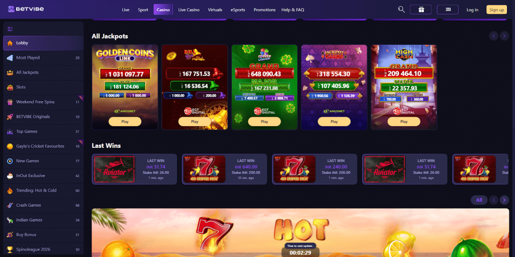 Live tables come from Evolution, Pragmatic Play Live, Ezugi, and Playtech Live. These studios stream 24 hours a day. For players in India, some lobbies have Andar Bahar, Teen Patti, and Hindi Roulette.